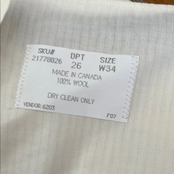 Unhemmed 36.5 inchesTwill wool Made in CanadaTanFlat front