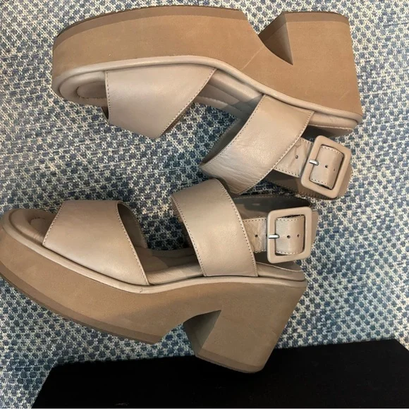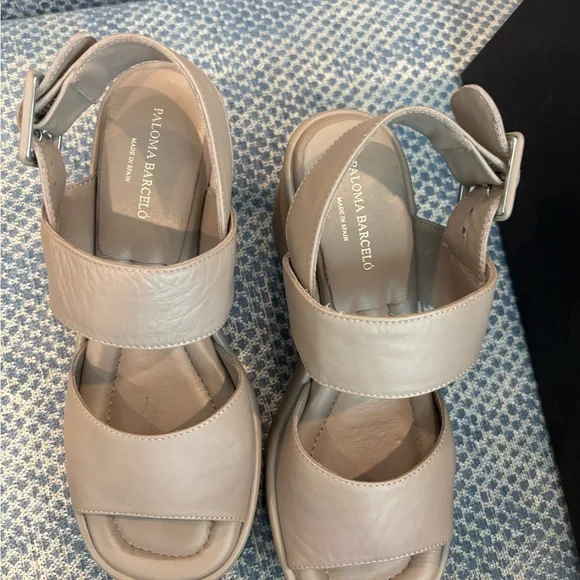 Paloma Barcelo´s taupe platform sandals, worn twice and in excellent condition. The wide strap and cushioned footbed ensure comfort and they make you nice and tall! Beautiful quality shoes made from soft Napa leather.