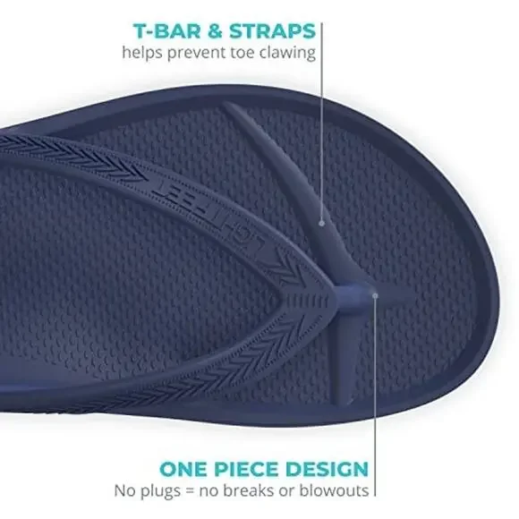 lightfeet unisex orthotic flip flops with arch support in navy blue (size 10 women’s / 9 men’s). designed for comfort and stability with contoured footbed and durable...