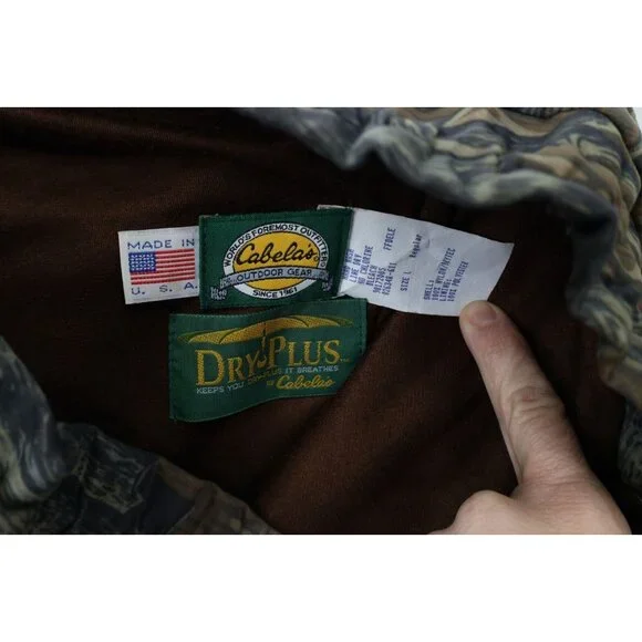Vtg 90s Cabelas Mens L Mossy Oak Camouflage Treestand Chamois Cloth Pants USAMens PantsInside cuffs blemished and pilled. USA made. Has color fadeMens size LargeMeasurements are:19 inches across the waist laid flat32 inch inseam44 inches from top to bottom10.5 inch leg openMulticolorNylon Check out my other items in my store!PR1949