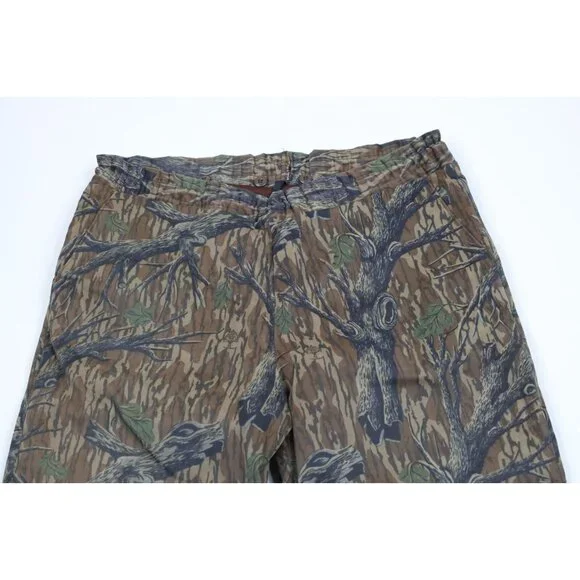 Vtg 90s Cabelas Mens L Mossy Oak Camouflage Treestand Chamois Cloth Pants USA
