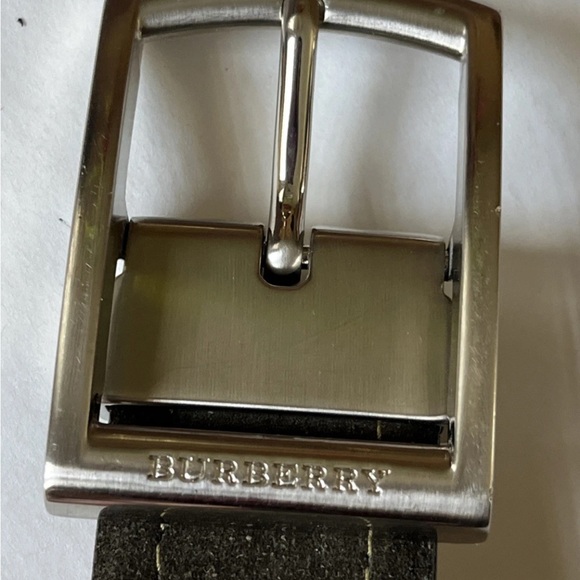 This is a Burberry belt in dark brown suede and tan leather, reversible with a solid pattern and a buckle accent. Excellent preowned conditions. It is size 42 inches (105cm) with...