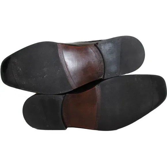ALFANI CROWN Black Leather Lace Up Plain Toe Dress Oxfords Mens Shoe 11 MSRP $99Pre-Owned.Due to previous wear (see photo 12), these shoes have some: scratches, scuffs, and markings, which range in size, on both shoe’s black leather uppers and black heels.This can be seen in all photos, but for two specific examples of this, please reference photos 10 and 11.#11-120ORIGINAL RETAIL VALUE = $100#11-120
