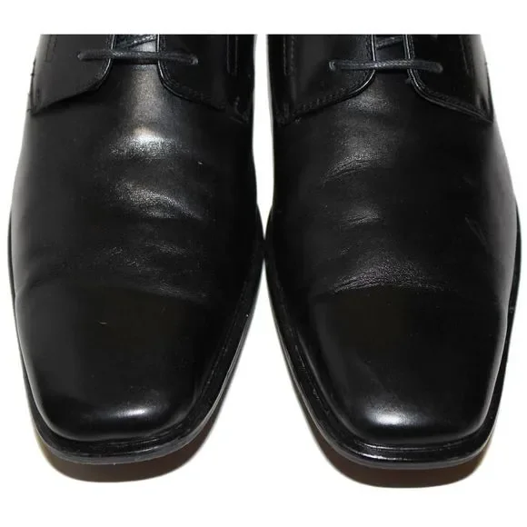ALFANI CROWN Black Leather Lace Up Plain Toe Dress Oxfords Mens Shoe 11 MSRP $99Pre-Owned.Due to previous wear (see photo 12), these shoes have some: scratches, scuffs, and...