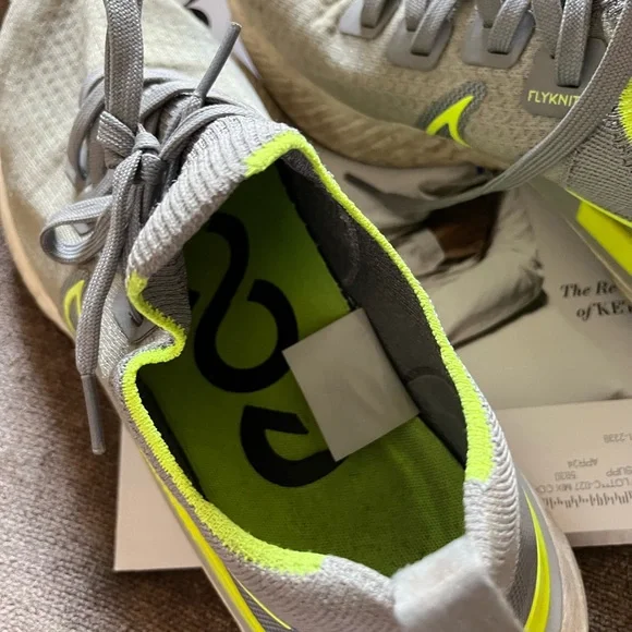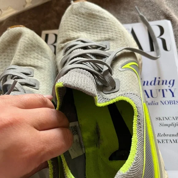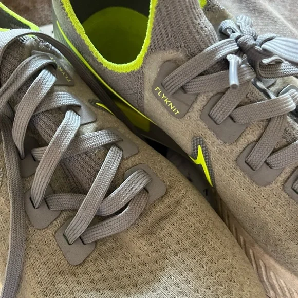 Nike REACT Gray & Lime Green FlyKnit Sneakers - Men’s Size 10Reasonably worn- some scuffs on the white rubber and tiny pull near toe tips (see photos) but otherwise great...