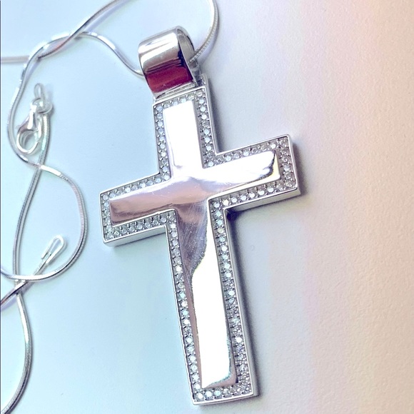 925 stamped solid Korean Sterling silver cross pendant