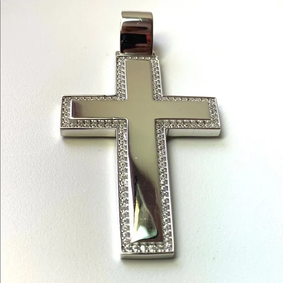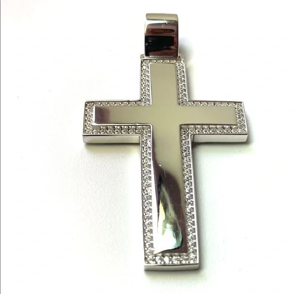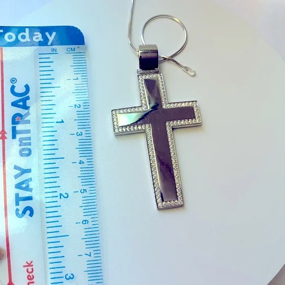 925 stamped solid Korean Sterling silver cross pendant. Men’s Sterling Silver Cross pendant. Best gift for Easter,Christmas,Father’s Day and wedding Anniversary or birthday. Pendant Metal: 925 Korean Sterling silver Pendant size: 2.1 inches long & 0.3 inches wide Pendant weight:8.83gstone:CZChain not including you can buy your choice of chain separately in my store.Ship with a Free gift box Thank you and Gold Bless!