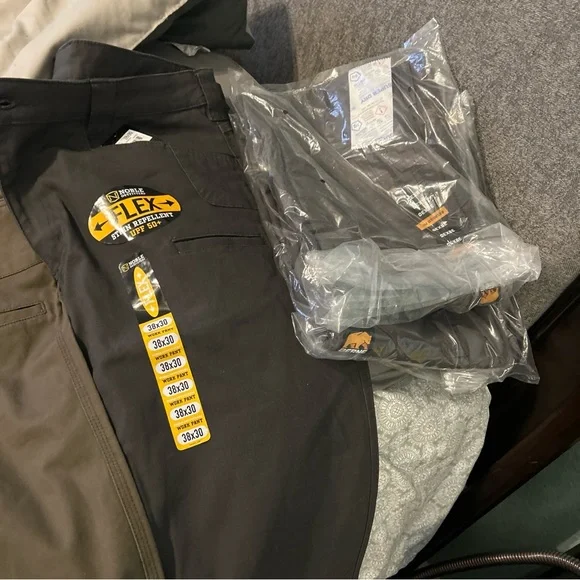I have 1 pair of green Noble Outfitters carpenters pants and 6 pair of Bernie outfitters pants all brand new with the tag still on them all sizes 38x30… they are $25 a pair