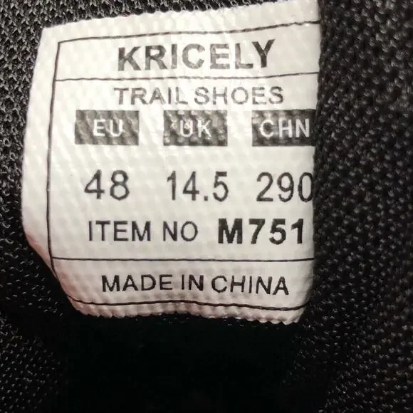 Excellent Used Condition-Like New-Kricely X-Grip Trail Shoe Ultra Mens Size 14.5 Style m751 Blue/Red Cross TrainerSize: Mens 14.5Color: Blue with Red accents and soleStyle: M751 TrailClosure: Lace UpMaterial: MeshPre-Owned Condition: Item is in great condition, gently worn and maintained, normal signs of pre-owned wear, no tears ro rips. Excellent tread remaining. No Box. Original Insoles. Photos are of the actual product. May have sole, footbed and outter sole discoloration typical of pre-owned shoes. Non-Smoking EnvironmentPlease see photos for additional questions on condition and description.Ask Questions if you have any. I always package your purchase carefully and ship in one 1 business day.