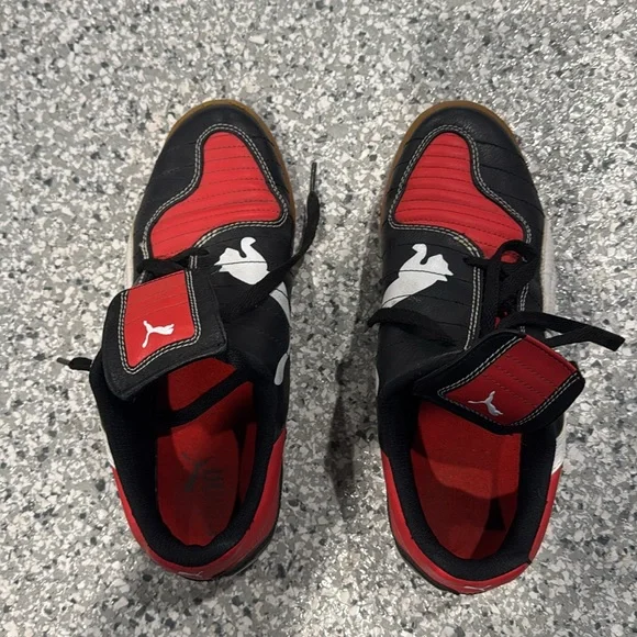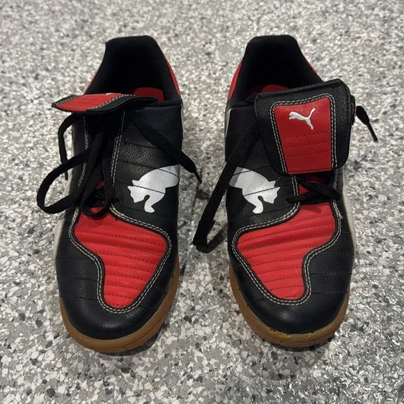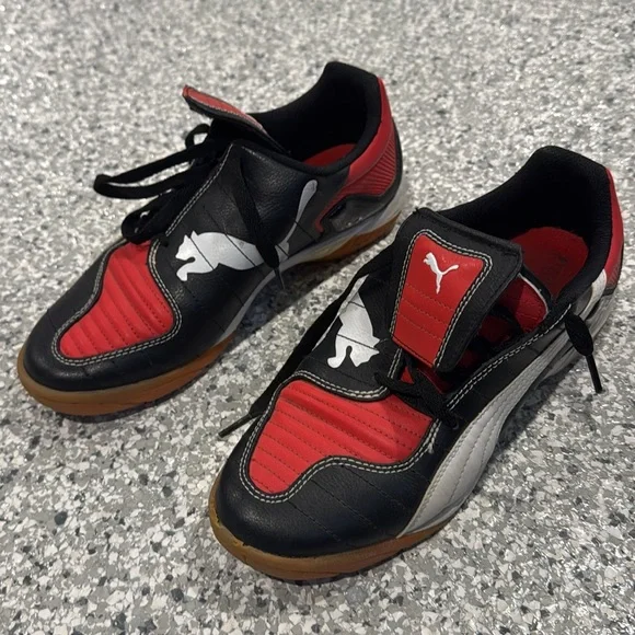 PUMA V-Kon III Soccer Indoor Outdoor Shoes 8 Black Red Side Lace Up
