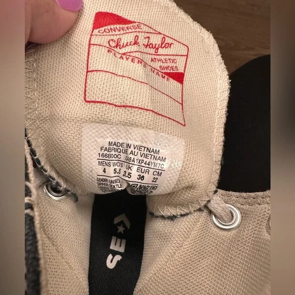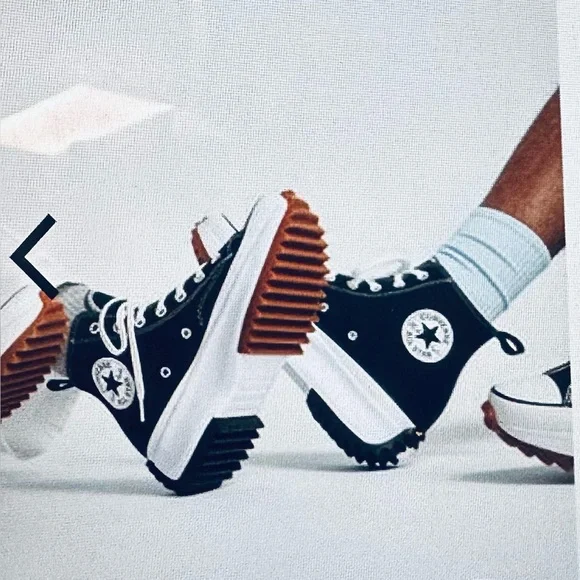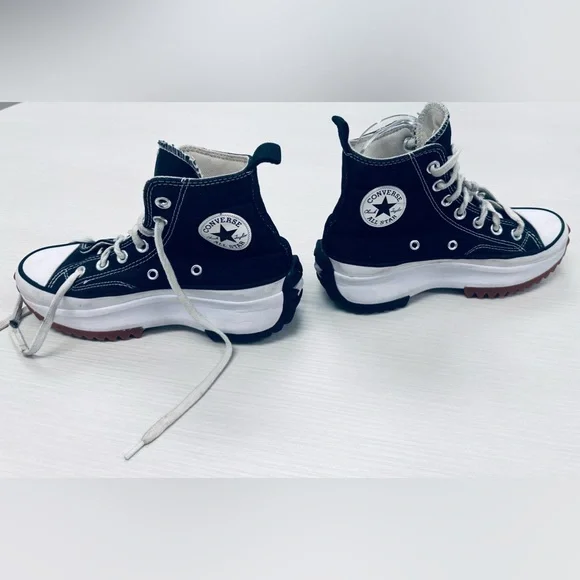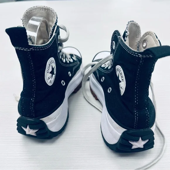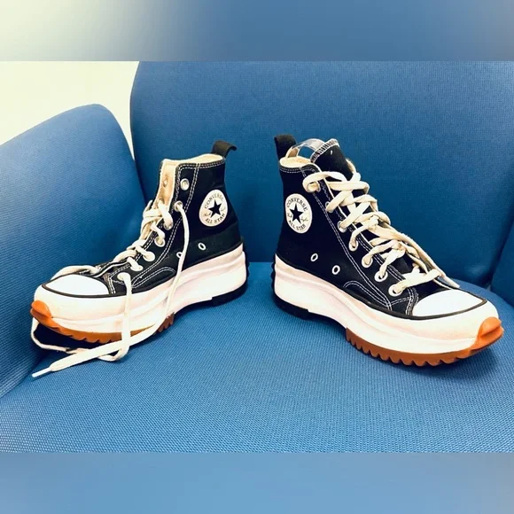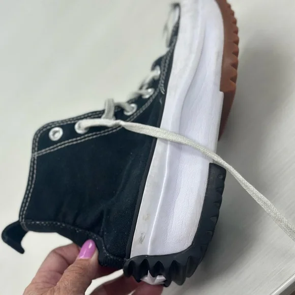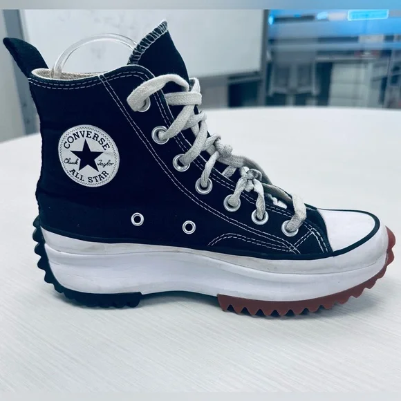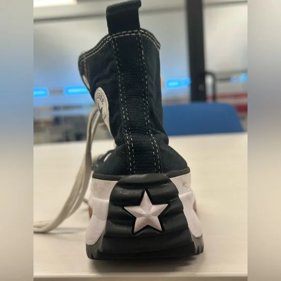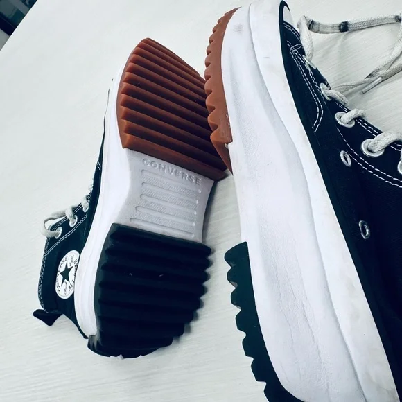 Converse All Star black& white high-top sneakers with lace-up design, elevated Platform Men 4/ Women 5.5 In good condition.