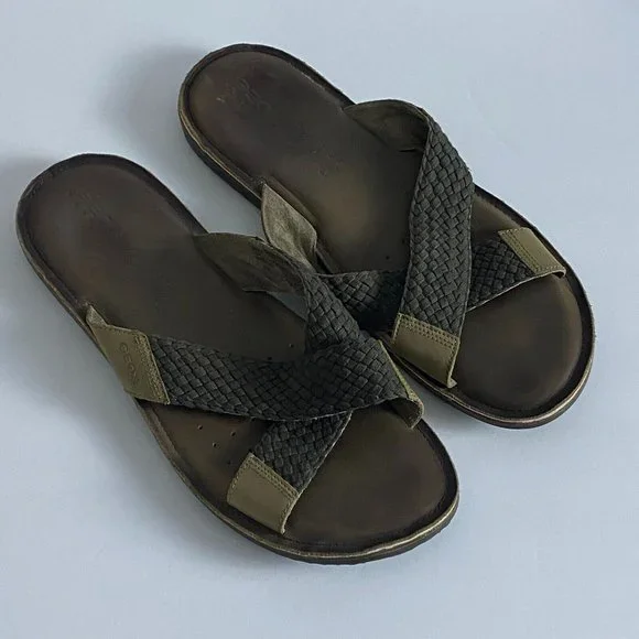 Condition: Pre-OwnedGreat Pre-Owned Condition (see pics for details)Features: Style Profile: classic casual beach summer slides preppy Flaws: No Holes, stains, or tears Please see photos for measurements (in inches) We are happy to answer your questions Slides All Season Brown slides with braided straps Made in India Machine WashSize: Mens US 12 - EU 46 - UK 11.5Fast ShippingOffersWelcome!