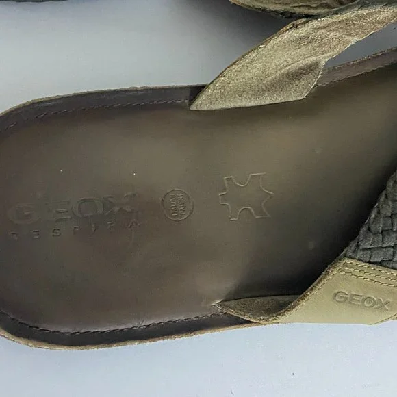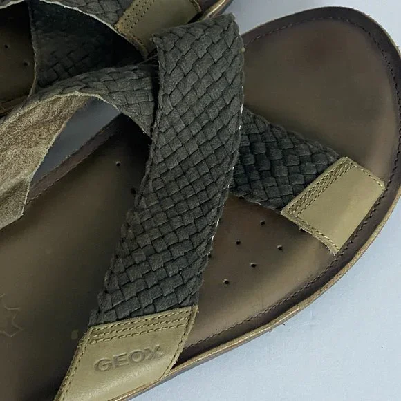 GEOX RESPIRA Mens Brown Sandals Size 12 (46 EU) Slides Beach Braided