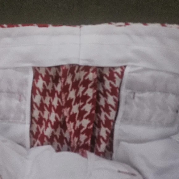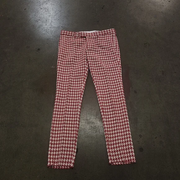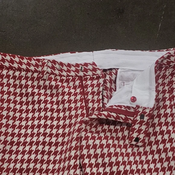 Edikt Made to Measure Red Houndstooth Trousers...70% Wool/30% Polyester...Waist measures a 38, but they are slim fit so they can work for a 36. They can be let out 2 inches in the waist if needed.