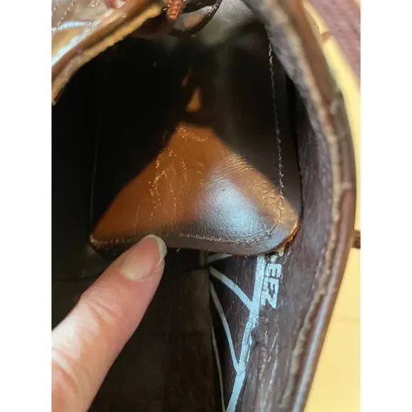 O’Sullivan Men´s Leather Oxford Dress Shoes Size 11E Executive Imperials Lace UpVery good, preowned condition. One scuff mark on front toe of right shoe and scuff wear on top of shoe tongue from the laces. This is covered up when laced up (see last 3 pics).Size 11ELeather UpperLeather Sole Velvet-eezLace UpOxford styleExecutive Imperials model Brown in colorDress ShoeBusinessWedding GuestSpecial OccasionFormal