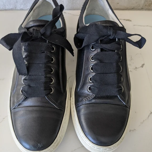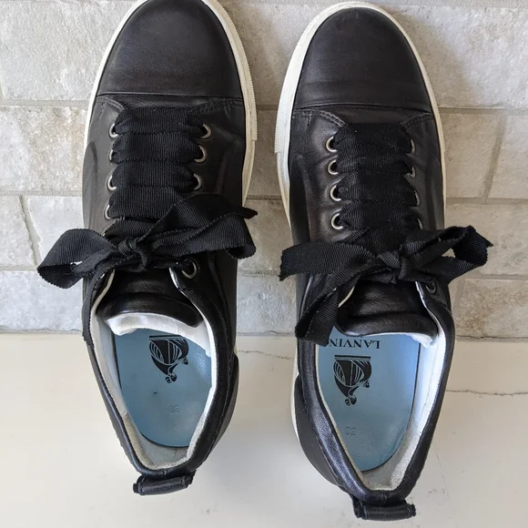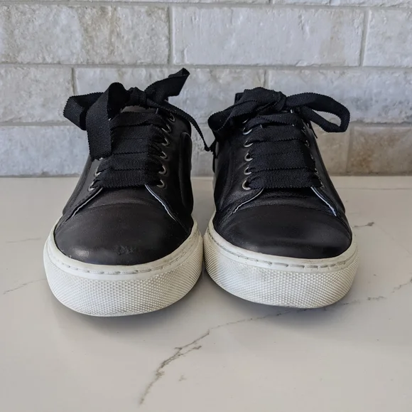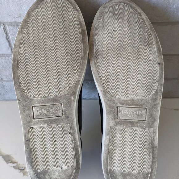 In great condition. There´s one tiny scrape scuff on the toe of one shoe but other than that the leather uppers are in excellent condition. the entire shoe is in excellent condition with exception of that one spot and some soiling on the rubber. The box is in good condition and has a new dust bag. Would fit on a six and a half. They also come with a new pair of extra ribbon laces!