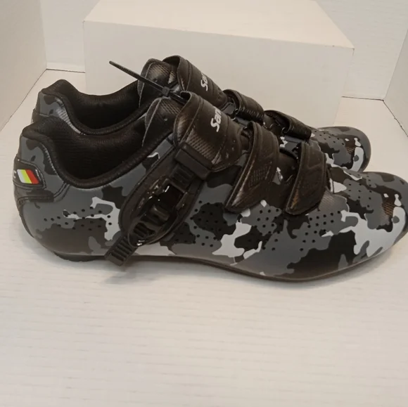 Bike cleats compatibleRoad ShoesAdjustable lockFiber-reinforced nylon bottomThe curved inner heel construction prevents the foot from twisting and rollinBrans New without BoxFast ShipQuestions? Leave a comment below!