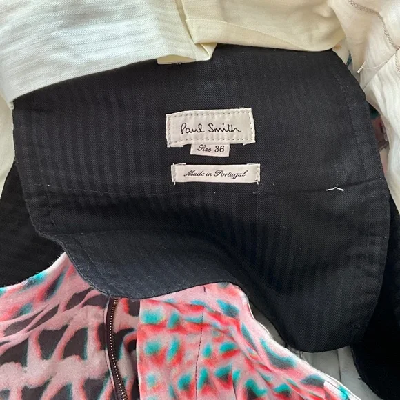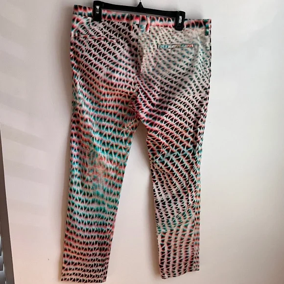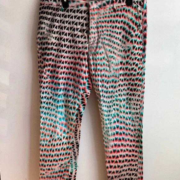 PAUL SMITH Size 34 Pink & Aqua Print Cotton Zip Fly Dress Pants