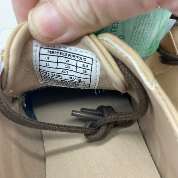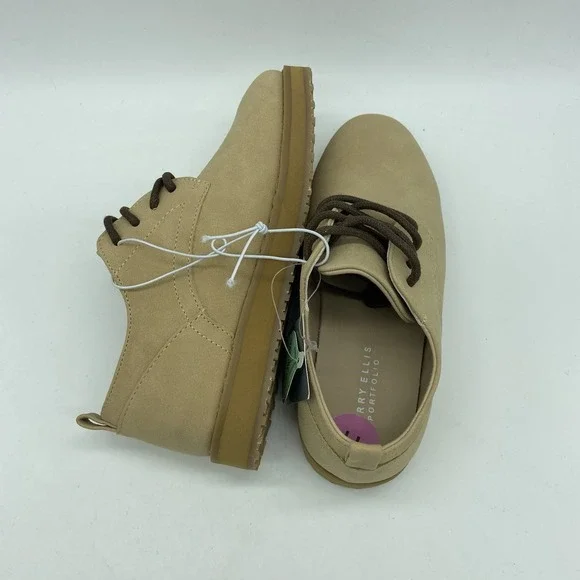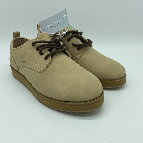 The Perry Ellis Portfolio Faux Suede Dress Shoes in size 11 are perfect for stylish young boys. These beige oxford-style shoes are designed to complement a smart and sophisticated...