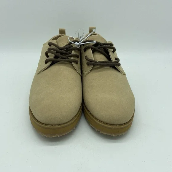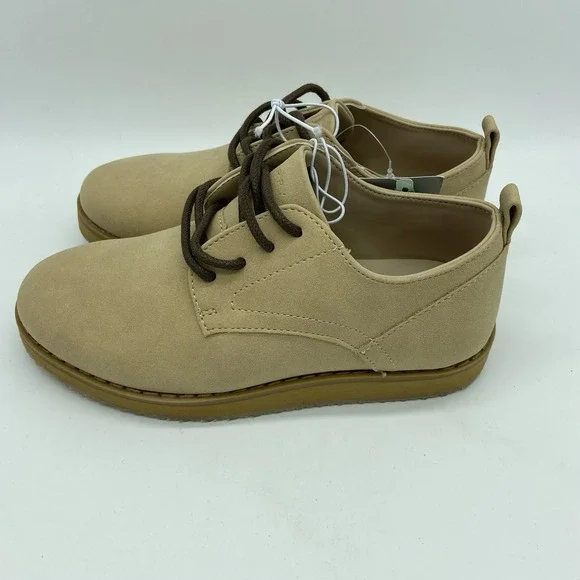 The Perry Ellis Portfolio Faux Suede Dress Shoes in size 11 are perfect for stylish young boys. These beige oxford-style shoes are designed to complement a smart and sophisticated outfit. With the iconic Perry Ellis brand name, these shoes are sure to provide both comfort and style for any special occasion. Perfect for young boys who want to look sharp and put-together, these faux suede dress shoes are a versatile addition to any boy´s wardrobe.