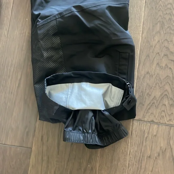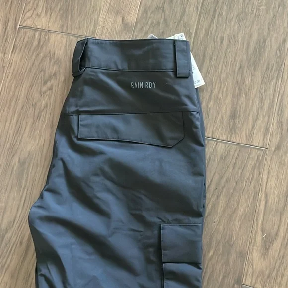 Fully rain proof. Lots of pockets. Rain lining on legs with buttons to close legs tightWill fit waist 30 to 33