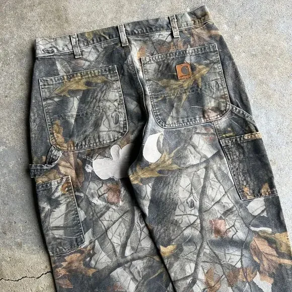 Vintage Y2K Realtree camo carhartt work wear carpenter pants. Great pair. Have some patches done to them. Measure 31x30 and a 9.25 leg opening. Please check measurements before purchasing. I do my best to show any flaws in pictures. Quick shipping! Bundles encouraged! @ants_haul on Instagram. 87!!!