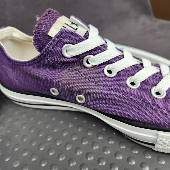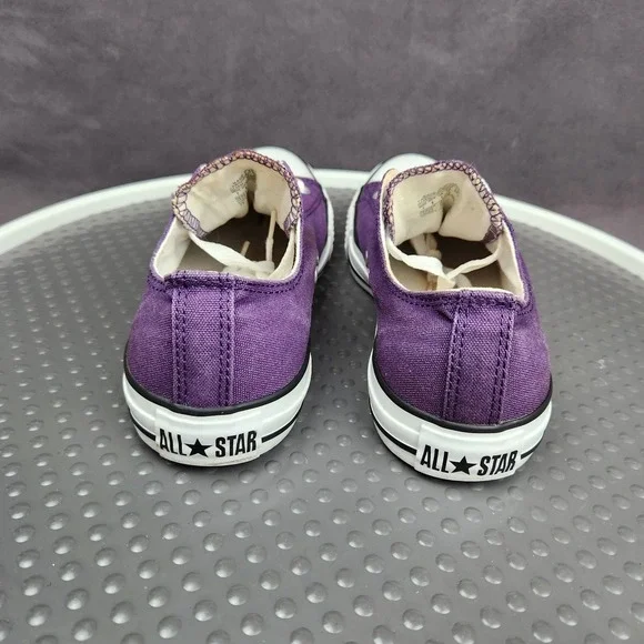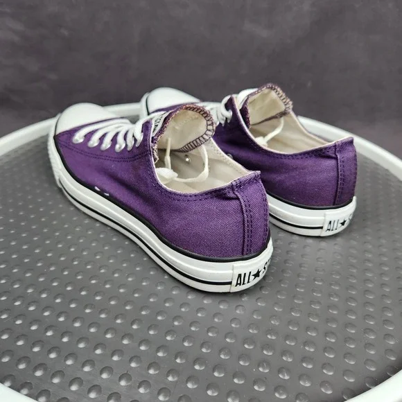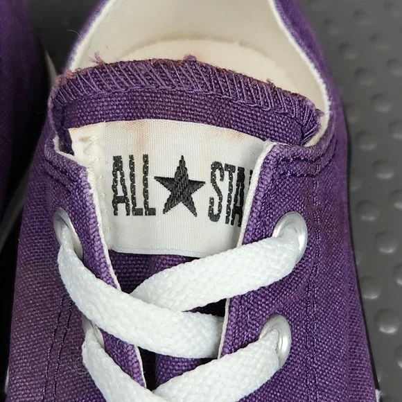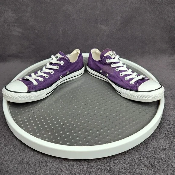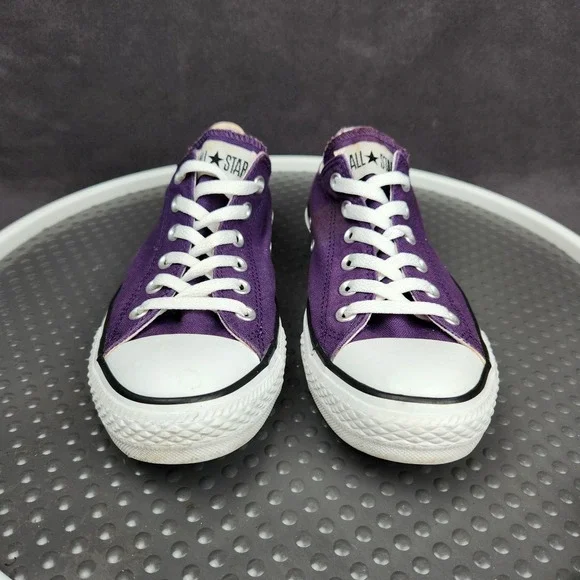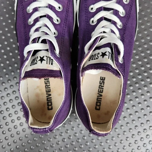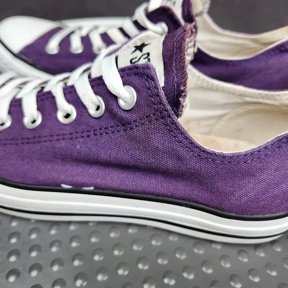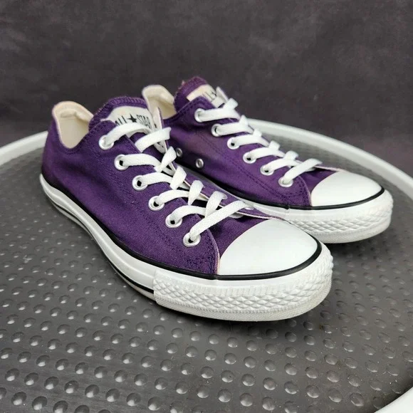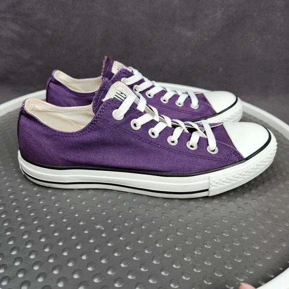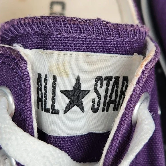 Converse Chuck Taylor All Star Shoes Mens Size 7 Purple Classic Canvas SneakersCondition: Gently worn, some staining (see photos), minor signs of use on solesClassic purple canvas upper with white rubber toe caps and midsolesWhite contrast stitching and white lacesUnisex sizing, marked Mens US 7 (Womens US 9), UK 7, EUR 40, CM 25.5Outsole made of durable textile/rubberALL STAR branding on heel and Converse branding inside footbedGreat versatile everyday sneakers, iconic style ready to wear