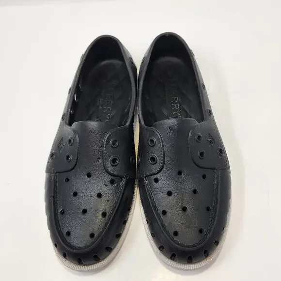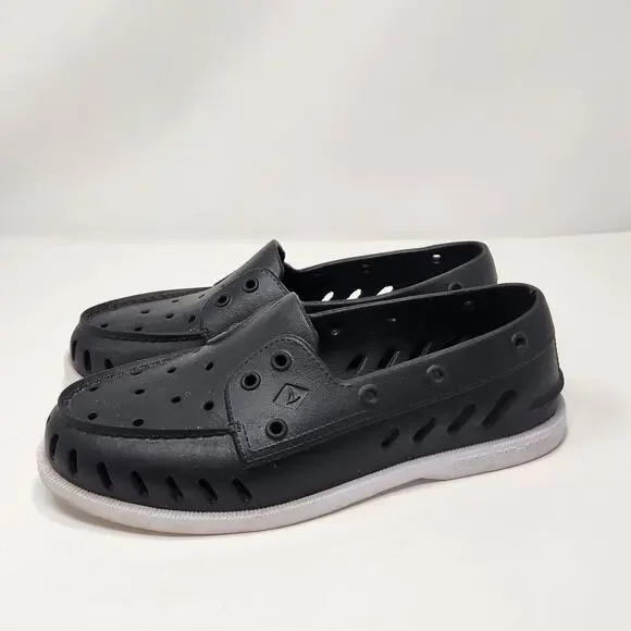 Sperry AO Float Boat Shoes Unisex Black White Rubber Men 8 Women 10 Slip On