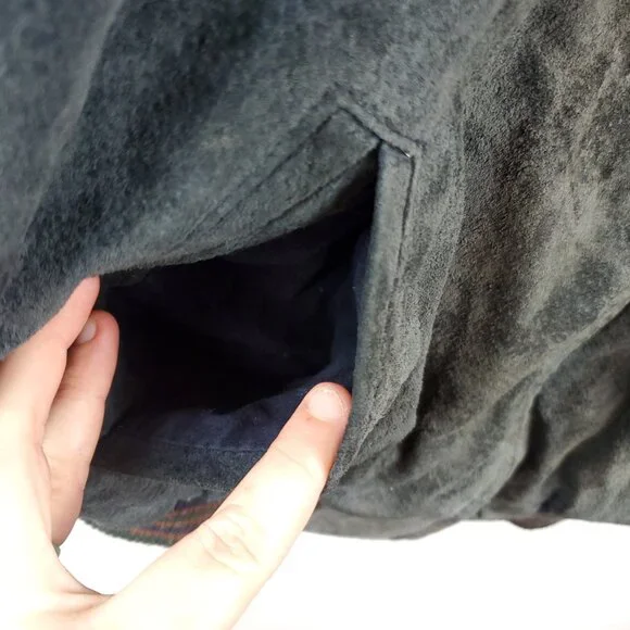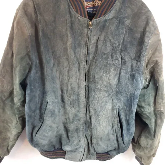 Vintage Varsity Leather Seude Two Tone Full Zip Mens Sz XL JacketRibbed Bottom Hem, Neck Hem & Slv Cuff, Front Pockets, Full Zip, Dry Clean OnlyMaterial: Leather, Nylon Polyester...