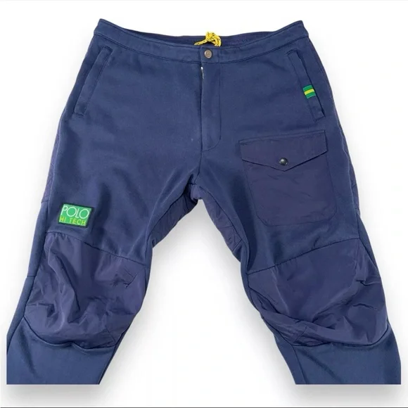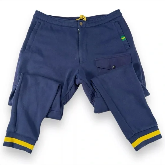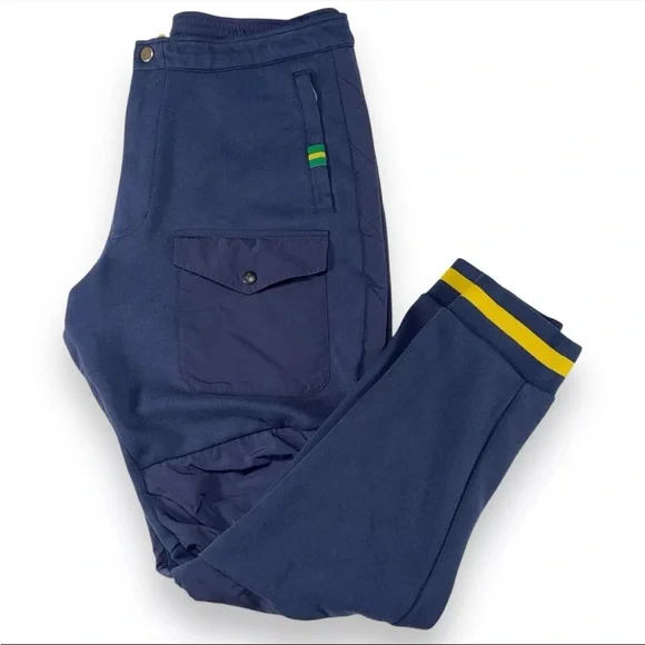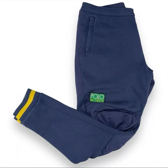 Polo Ralph lauren High Tech Navy Quilted Joggers with Yellow Stripe. NWOT