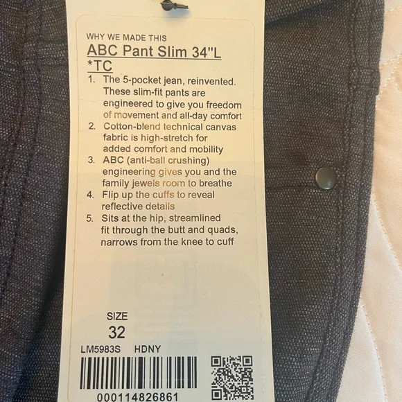 2 pairs men’s Lululemon ABC Pant Slim size 32/34. NWT