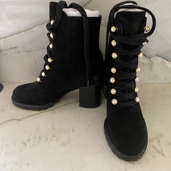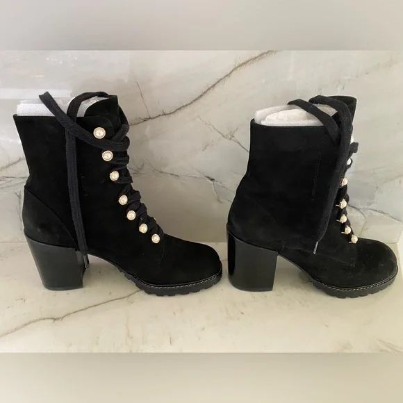 Stuart Weitzman Ivey Suede Faux- Pearl Embellished CombatBoots