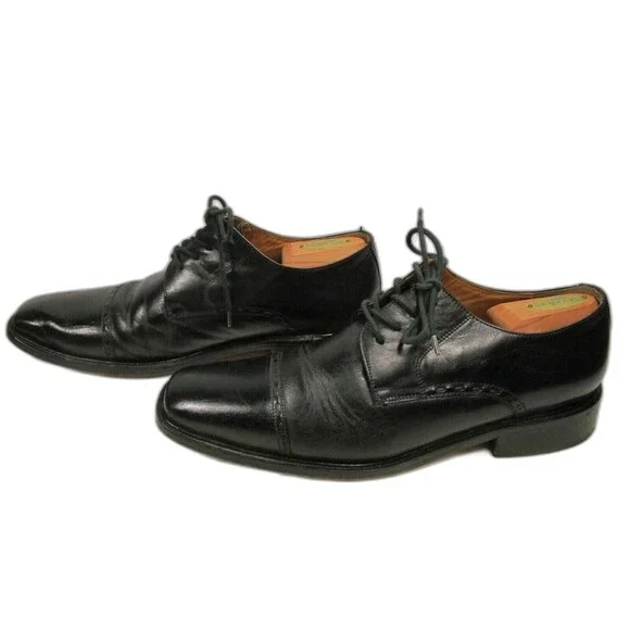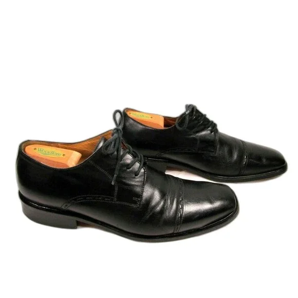 Tasso Elba Antonio M41804 Mens Black Leather Cap Toe Lace Up Oxfords Size US 10M Pre Owned. Please View All Photos Carefully For Wear And Overall Condition. Use Zoom. Smoke Free Environment. Shoe Trees Not Included. Original Insoles, 788