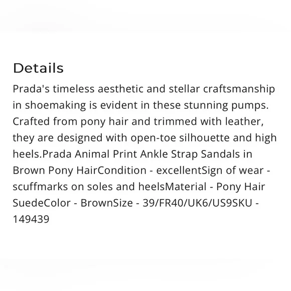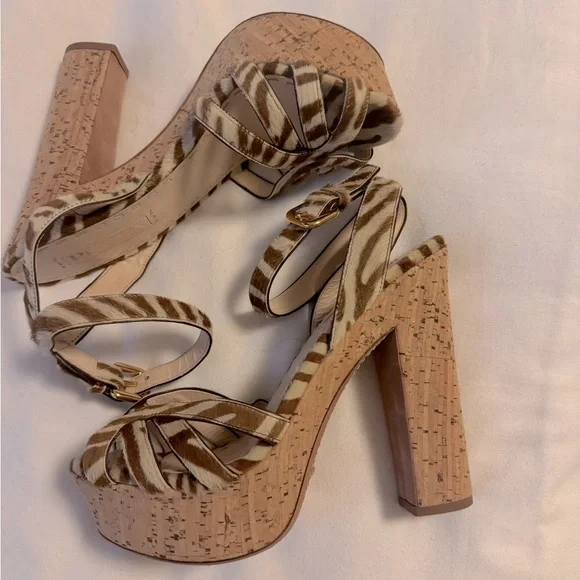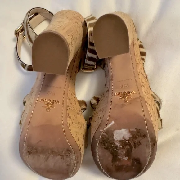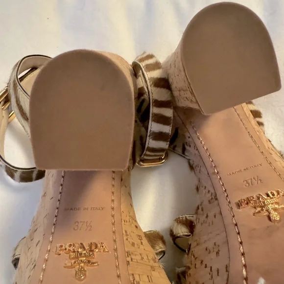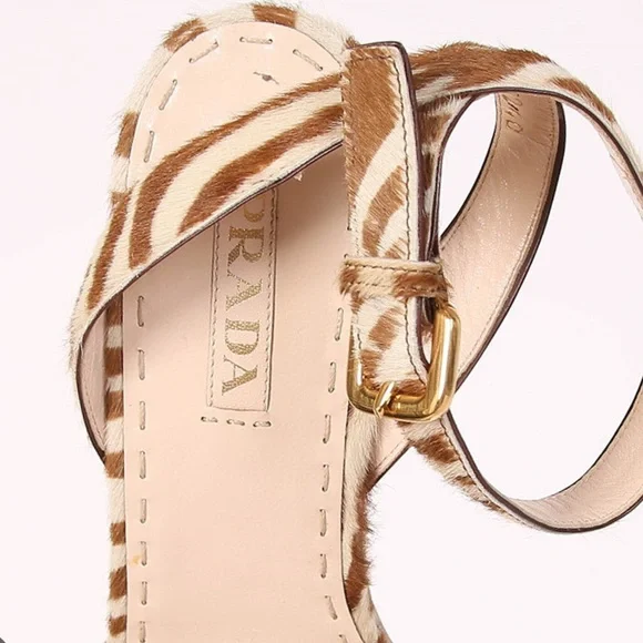 PRADA calf hair animal print sandals size EU 37.5US 6.5 used in good condition