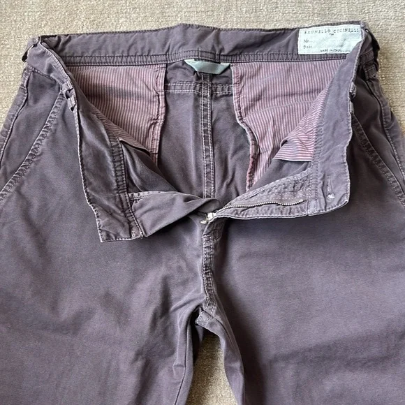 Mauve colored AUTHENTIC Brunello Cucinelli chino pant in 100% Cotton. Worn a handful of times and ready for a new home where they’ll be worn! Size IT 46
