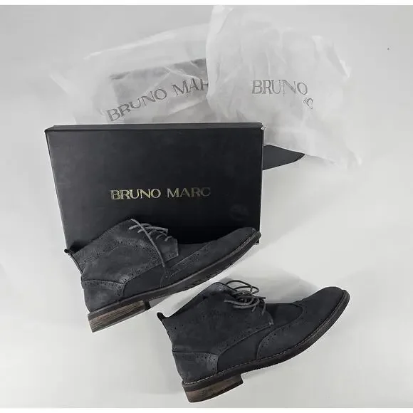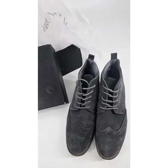 Bruno Marc Men´s 10 Grey Suede Wingtip Chukka Boots Cushioned Insole Preppy