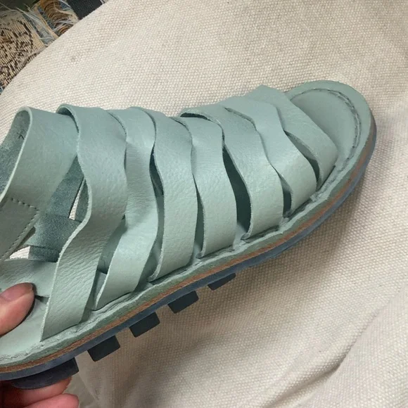 Trendy green strappy sandals with a unique design. Perfect for casual outings.