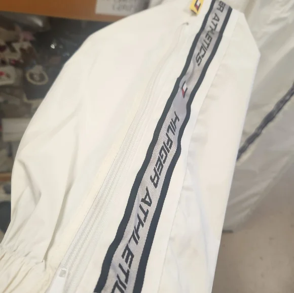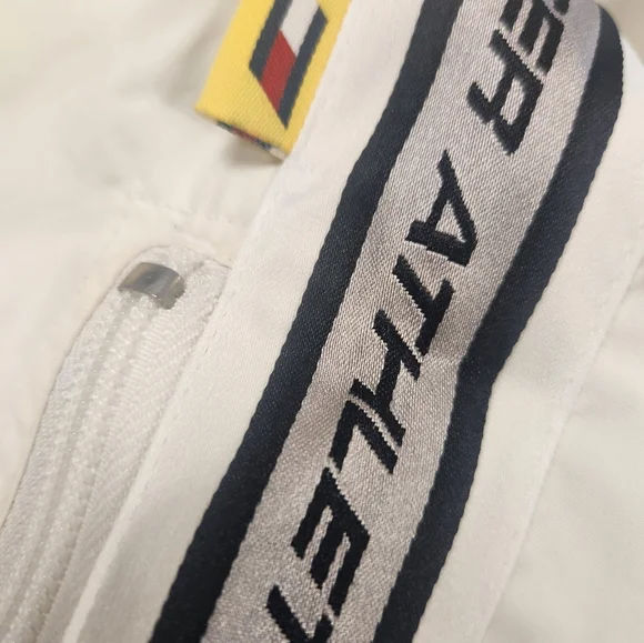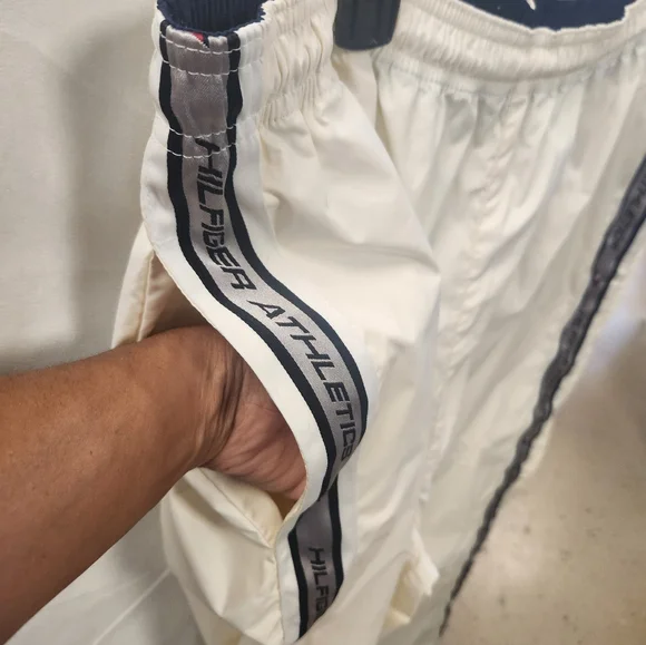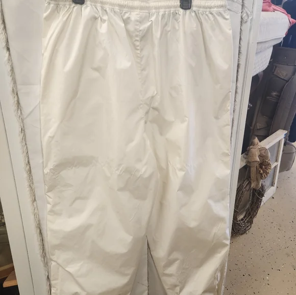 vintage pants from the 90´s.Size XL In cream color. Elastic waistband with pockets and side zippers at ankles. Kept well maintained. No tears or stains. Waist measures 17.5 inches, length in pictures. Logo on both sides of outer leg side panels.