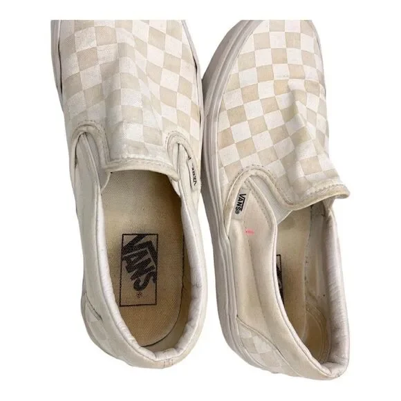 Vans Vault OG Era LX Checkboard Logo Size 7 Men´s Shoes Tan And WhiteCombining Vans’ two iconic branding designs, the OG Era LX features a distinct pattern for an authentic finish. The sturdy canvas upper features tonal stitching that coincides with the cotton laces. Its vulcanized rubber built protects the inner cushioning while its waffle outsole elevates its traction and grip.Canvas upperRubber outsoleVulcanized rubberCushioned midsoleStyle No: VN0A3CXNB50Good Preowned ConditionALL ITEMS COME FROM A SMOKE FREE HOME. ALL MEASUREMENTS ARE APPROXIMATE. ALL ITEMS HAVE BEEN LOOKED AT AS CLOSE AS POSSIBLE, HOWEVER MISTAKES DO HAPPEN SO PLEASE MESSAGE ME WITH ANY QUESTIONS OR CONCERNS.THANK YOU FOR SHOPPING MY CLOSET.SEND ME A REASONABLE OFFER.