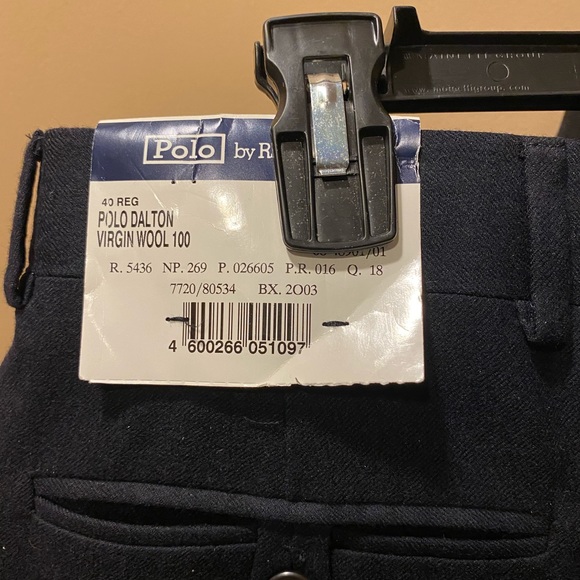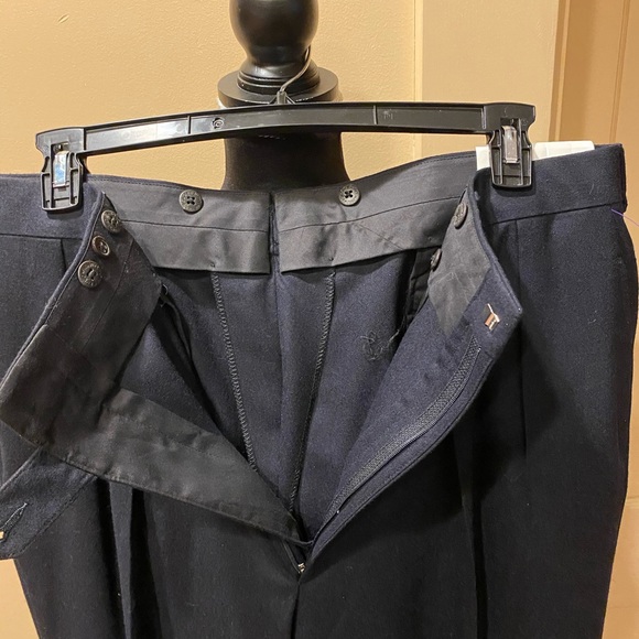 Ralph Lauren Polo Dalton Navy 100% Virgin Wool Slacks with Pleated Front.Unhemmed.