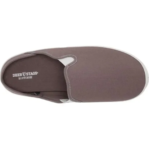 Deer Stags Men Slip On Mule Slippers Spike Size US 10M Charcoal Grey CanvasNew with boxWhether you´re at home or making a coffee run, stay comfortable in the Deer Stags® Spike, featuring a durable TPR outsole that allows for indoor/outdoor wear, with compression nodules providing extra support.Slip-on style.Easy-on twin gore opening for an easy slip-on fit.Insole is semi-cemented so you can replace it with your own orthotic.EVA midsole.Heel cushion features S.U.P.R.O. Sock technology for shock absorption that is unlike most slippers.Compression nodules on the outsole provides extra support.Durable TPR outsole allows for indoor/outdoor wear.Man-made upper.Man-made lining and insole.Man-made outsole.Imported.