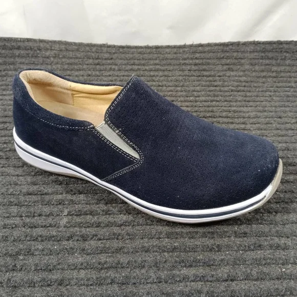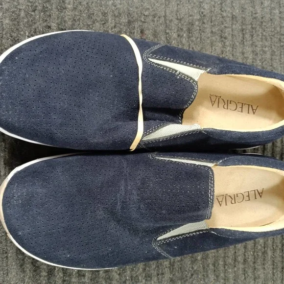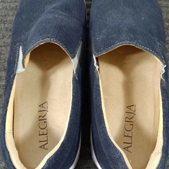 Alegria by PG Lite Aaron men casual fashion shoesSuede leather upperPadded collar for slip-on comfortElastic sidesRubber solesMen work shoesSize: 44/ US 10 MenColor: Blue/whiteCondition: Pre-owned, Good This item is in good secondhand condition with minor signs of normal wear such dirt on item, small stains, missing insoles or buttons.Bundle items together and save. Ship out 1-3 days after processed. We are a small business here to help with your secondhand/ pre-owned needs. Also buy from us on our online store @ wstthrift.com.