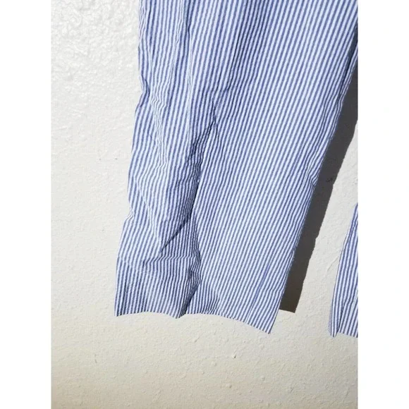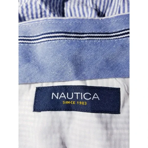 Vintage Nautica Mens Blue White Striped Flat Front Pants Size 42 x 30 Seersucker