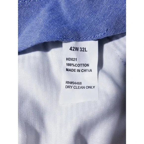 Style : flat front pantsSize:42 waist x 30"Approximate measurements laying flat:Waist - 42" (+2 inches extra fabric to let out)Front rise -13.5"Inseam - 30" (+1.5" extra fabric to...