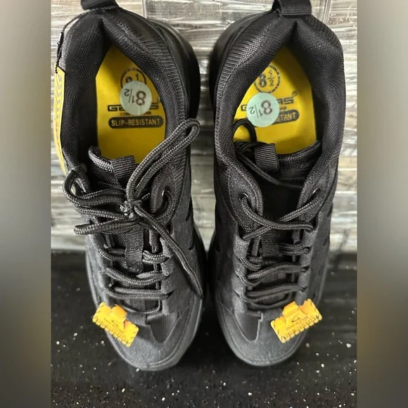 BRAND NEW!! Men’s 8.5A padded comfort men´s sneaker in size 8.5 by GEERS. These black athletic shoes feature a lace-up closure, cushioned and slip-resistant design, breathable padded lining, and a wide shoe width. Designed for casual or workwear use in winter, fall, and spring seasons, these sneakers have a solid pattern with sturdy sole and details. The outsole is made of rubber for durability, and the upper material is breathable for style and comfort. Ideal for outdoor activities like walking. Brand new no box. Thanks for looking!Perfect for restaurant or bar wear.