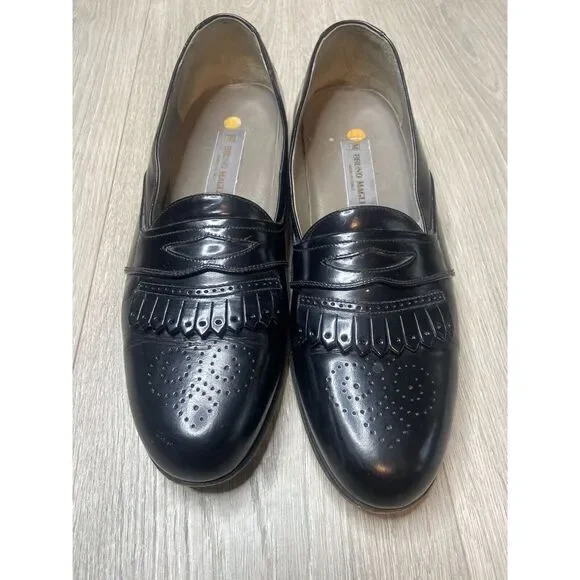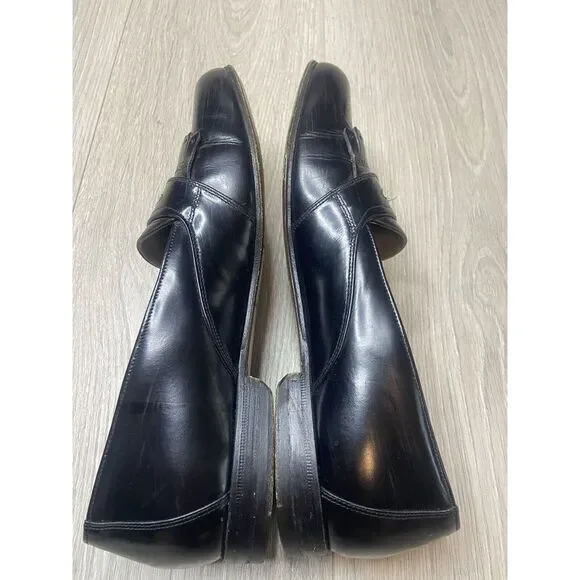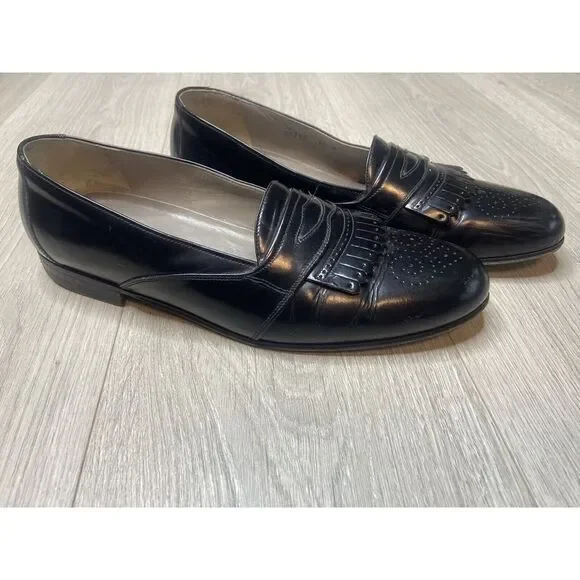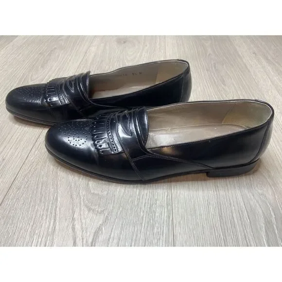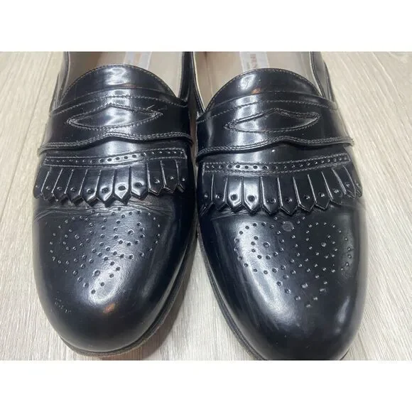 Bruno Magli Kiltie Penny Loafer Men 9.5N Black Leather Made in Italy Dress Shoes