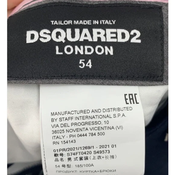 DSQUARED2 mens navy blue flat front dress pants sz 54Material97% cotton3% elastaneConditionvery goodPlease see photos for details.APPROX MEASUREMENTDisplayed Size 54 *please refer to measurements* Rise 10"Inseam 30"Waist 36"Hips 44" Total Length 40"