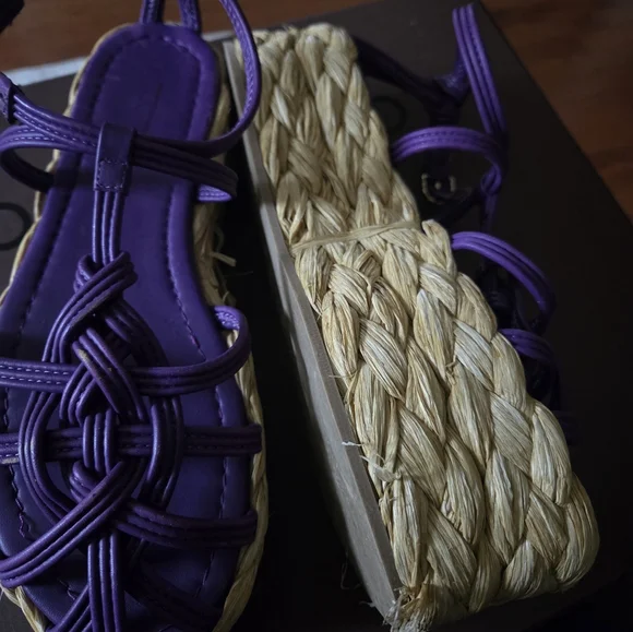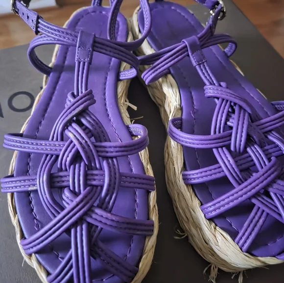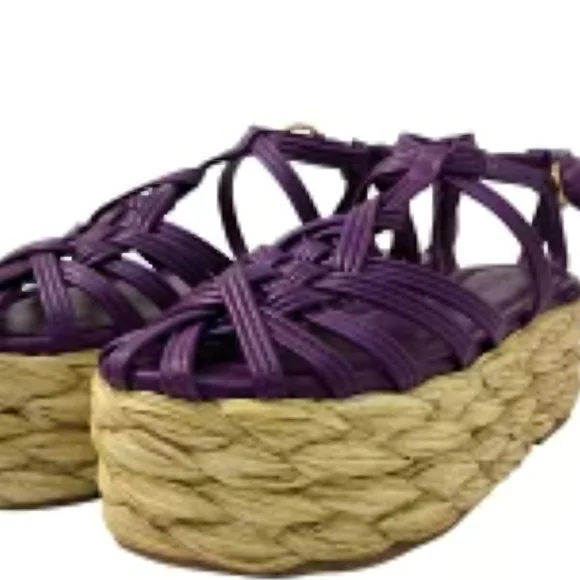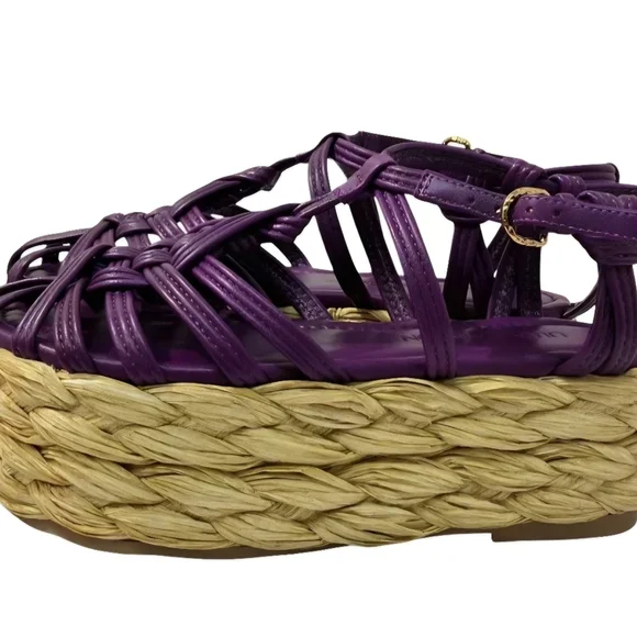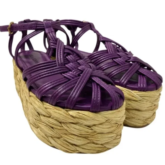 Women´s Viola Knotted Leather Flatform Sandals In PurpleUlla Johnson´s Viola sandals flaunt a knotted leather upper and a braided flatform sole. Leather upper Round toe Buckle closure Rubber sole Imported ABOUT THE BRAND Manhattan-based designer Ulla Johnson credits her archaeologist parents as inspiration for her namesake ready-to-wear label, founded in 1998. Natural fibers, easy fits and meticulous finishes are seen in each collection, which incorporate sweeping silhouettes, and printing and dyeing techniques from around the world.Ulla Johnson. Color: Purple. Size: 10Preowned.worn onceQuestions? Leave a comment below!