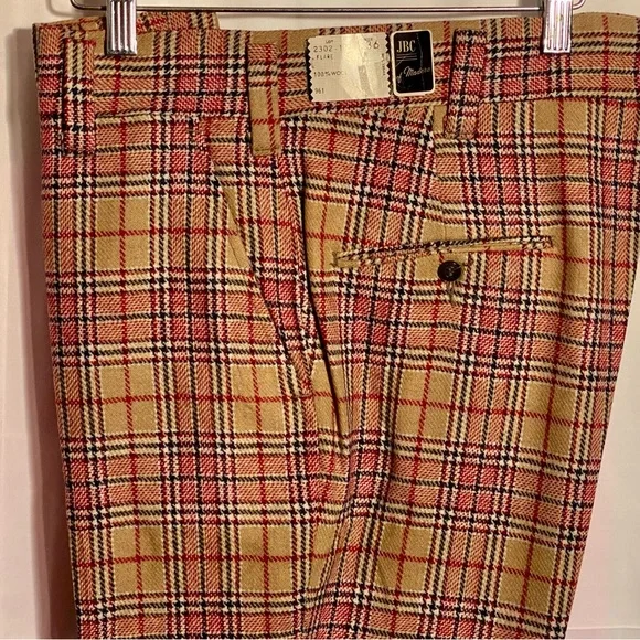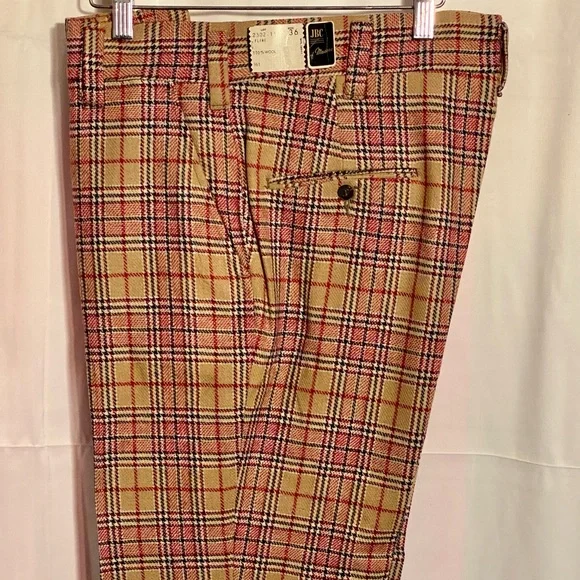 Vintage “JBC Of Madera” 100% Wool Plaid Dress Pants New/Old Dead Stock Sz-36