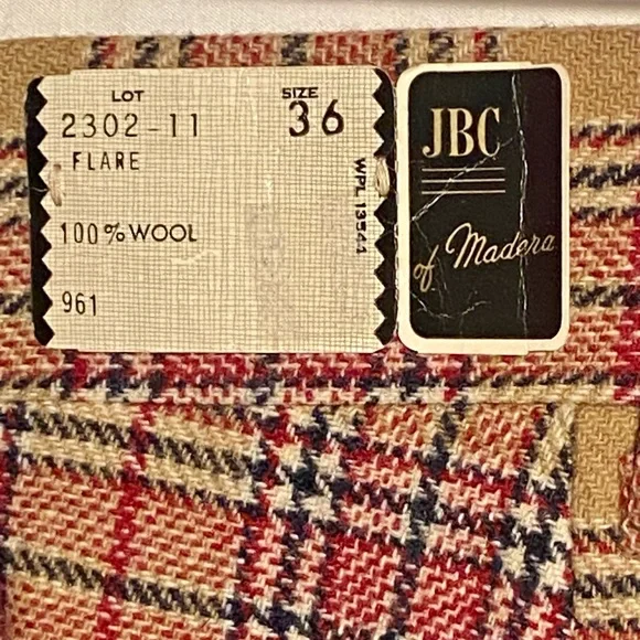 Vintage “JBC Of Madera” 100% Wool Plaid Flare Bottom Dress Pants, New/Old Dead Stock W/ Original Tags Attached, Size-36WInseam-Fits All (Never Hemmed)